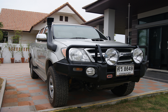 หาล้อสวยๆ ยาง 265/75/16 พอ ยกสัก 2 นิ้วก็หล่อแล้วสำหรับวีโก้ หล่อแบบรูดๆเน้นการใช้งานจริง เปลี่ยนบันไดไม่ต้องมีไซเรวของ ARB มาใส่หน่อย เดี๋ยวนี้ของ ARB ราคาไม่แพงเลย ตั้งแต่ย้านมาผลิตที่ปลวกแดง ระยองครับ