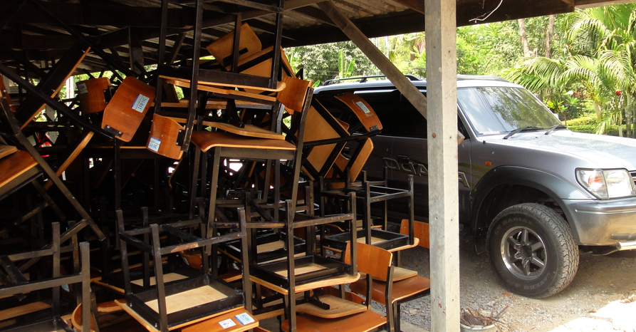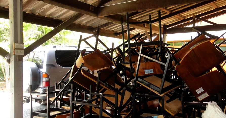 คุณครูสมศรี ปรับปรุงเก้าอี้โรงเรียนใหม่ ให้ผมมา ๓๐๐ กว่าตัว มีโรงเรียนมารับไปแล้ว ๑ โรง