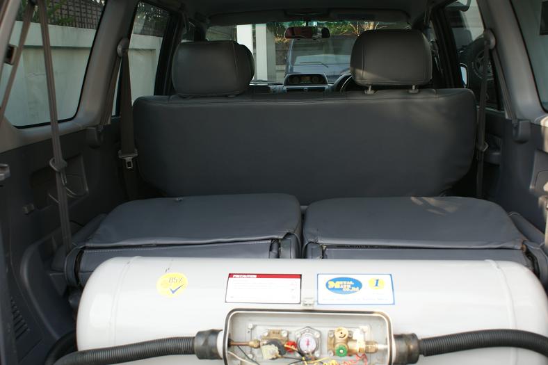 ถังแก็สก็ติดตั้งไว้ตรงตำแหน่งถังน้ำมันเดิมด้านท้าย ใช้ฝาปิดถังน้ำมันเดิมได้พอดีไม่ต้องดัดแปลงอะไร