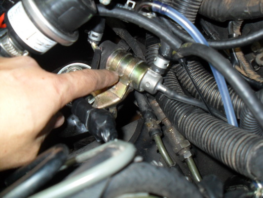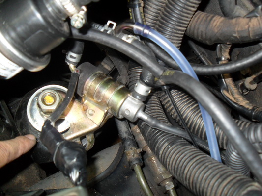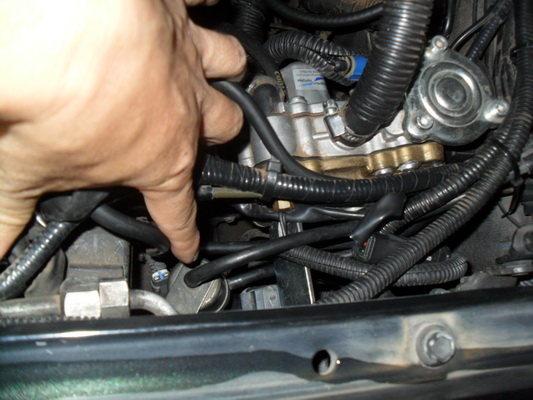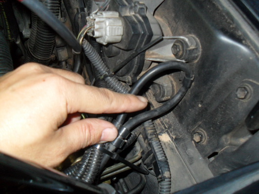 คราวนี้ไปตรวจสอบว่า ปั๊มน้ำส่งน้ำยังไงบ้าง เอาละซิ กระป๋องน้ำรถผม เจ้าปั๊มน้ำมีทางออกเดียว มีท่อยางเส้นเดียว ส่งไปยังฝากระโปรงอย่างเดียว ไม่มีการต่อท่อแยกอื่นใด ทีี่นอกเหนือจากไปบนฝากระโปรงหน้า