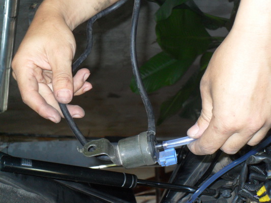 ต่อท่อยาง และหาจุดยึด ข้าง ๆ โช้คด้านซ้าย
