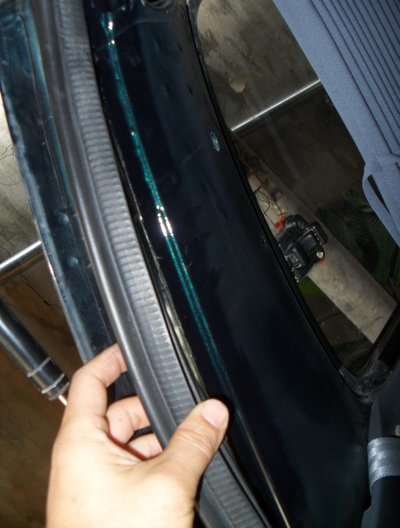ไล่ระบบสายท่องน้ำไปยังห้องโดยสาร แล้วผ่านไปยังประะตูที่ 5 พบว่า ท่อน้ำเดิมตัน เป่าลมไม่ผ่าน เลยต้องต่อท่อใหม่ เข้าแทน รื้อแผ่นหลังคา และกาบข้างนิดหน่อย รถไม่เสียหาย ทำง่าย ๆ ครับ