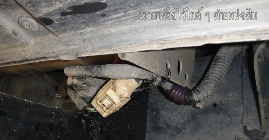 ต่อนะ : ผมทดสองใช้เครื่องมือวัดแรงดันน้ำมันโดยถอดกรองน้ำมันเบ็นซินที่อยู่ใต้ท้องรถด้านหน้าซ้ายออกเพื่อที่จะใส่เกจ์วัดแรงดัน(ไม่มีรูปให้ดูจินตนาการตามเอาเองนะ) โดยลอง On สวิทช์กุญแจ แต่ไม่มีน้ำมันออกมาพอบิดสตาร์ทน้ำมันก็พุ่งออกมา ผมก็คิดเอาเองว่าระบบไฟน่าจะมีปัญหาประกอบกับเริ่มมืดแล้วมองไม่ค่อยเห็น เลยใส่กรองน้ำมันกลับคืน กะว่าวันรุ่งขึ้นจะขับไปให้อู่ใกล้ ๆบ้านช่วยเช็คระบบไฟให้หน่อย พอใส่เสร็จก็มือสนเห็นมีคอนเน็คเตอร์สายไฟอะไรไม่รู้อยู่ติดกับครัชซีด้านซ้ายค่อนไปทางท้ายรถ ผมเอาไขควงเคาะๆไปเรื่อยเฉื่อย มีขี้ดินร่วงหล่นมาพอประมาณ แล้วลองสตาร์ทเครื่องดู ชึ่งเดียวติดอีกแล้ว ลองสตาร์ทอยู่หลายครั้งก็ชึ่งเดียวติด พอตอนเช้าผมลองสตาร์ทใหม่ก็ชึ่งเดียวติด ผมลองไล่ขั้วสายดูโดยติดเครื่องแล้วดึงออกทีละขั้ว ก็พบว่าขั้วสายสีขุ่น ๆ มีสายไฟมากกว่าทุกสาย(ที่ผมวงกลมให้ดู)เป็นไฟที่เข้าไปเลี้ยงปั๊มติกผมใช้น้ำยาทำความสะอาดคอนแท็คฉีดทำความสะอาดประกอบกลับแล้วรัดด้วยสายรัด ทดลองใช้รถยังไม่พบอาการสตาร์ทยากอีกเลย เลยนำมาเล่าสู่กันฟังแชร์ประสบการณ์กันนะครับ