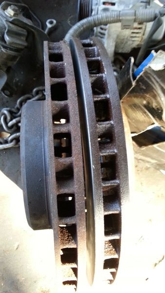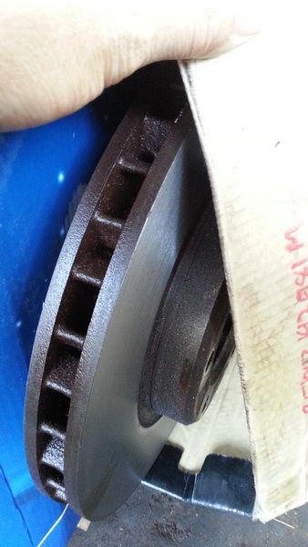 รายการซ่อมที่สอง คือ เมื่อวัดแผ่นจากเบรคห้นาซ้าย ชวาเปรียบเทียบกันพบว่า จานเบรคซ้ายบางกว่าด้วยขวาค่อนข้างมาก ซึ่งโดยปกติ แผ่นจากดิสเบรคแผนสัมผัสผ้าเบรค จะมีขนาด 8 มิล แต่ด้านซ้าย เหลือประมาณ 4 มิล เพื่อความปลอดภัยก็เลยหาของเก่าเซียงกง จากสมาชิกในเว็บ ได้ของสมบูรณ์มาก ๆ เลย ขนาดแผ่นจาน ดิสเบรคหนาเกือบ 8 มิล จะไปให้ช่างเปลี่ยนในการซ่อมครั้งนี้ครับ