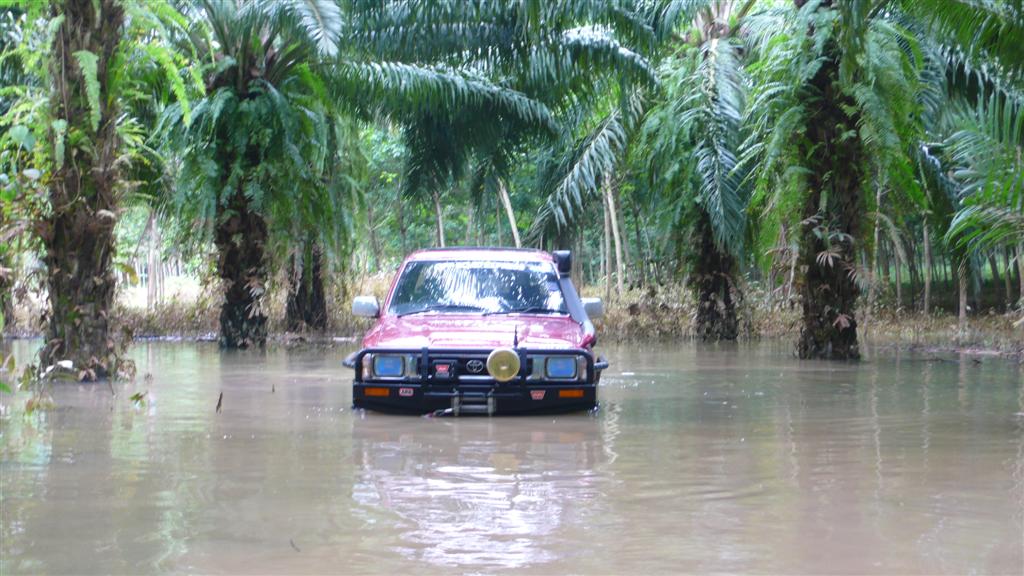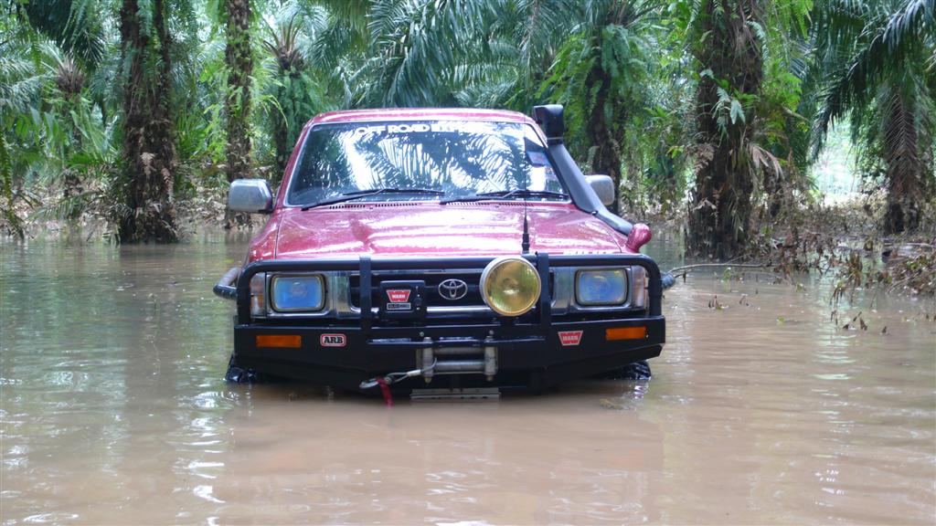 น่าจะเอารถไปลองตอนน้ำท่วมสูง (เห็นรอยคราบน้ำ)นะน้อง จะได้รู้ว่าลุยน้ำได้สูงขนาดใหน