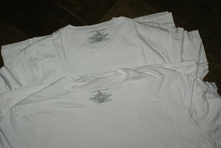 มีทั้งคอ วี และคอ กลม ครับ แต่ไม่แน่ใจว่าไซร์ไหนคอวีหรือกลม