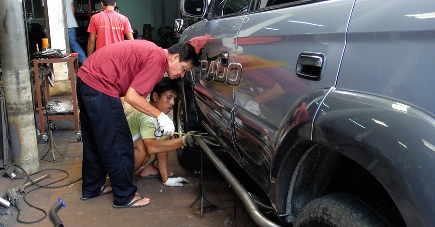แต่มาเห็นวิธีวัดขนาดแล้ว ๓-๔ ชั่วโมงจริง ๆ ครับ อีกอย่างรถพราโด้เรา ไม่มีแบบไว้ ยิ่งเป็นรถเปลี่ยนย้ายถังน้ำมัน ยิ่งต้องเอามาวัดขนาด ไม่สามารถทำแบบไว้ ถ้าเป็นวีโก้ ดีมาก ไทรทัน และเนาวรัตน์ โทร.ได้เลยครับ มีแบบอยู่แล้ว