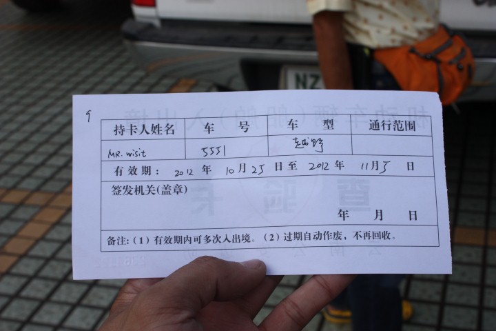 เอกสารเวลาเอารถเข้าจีน