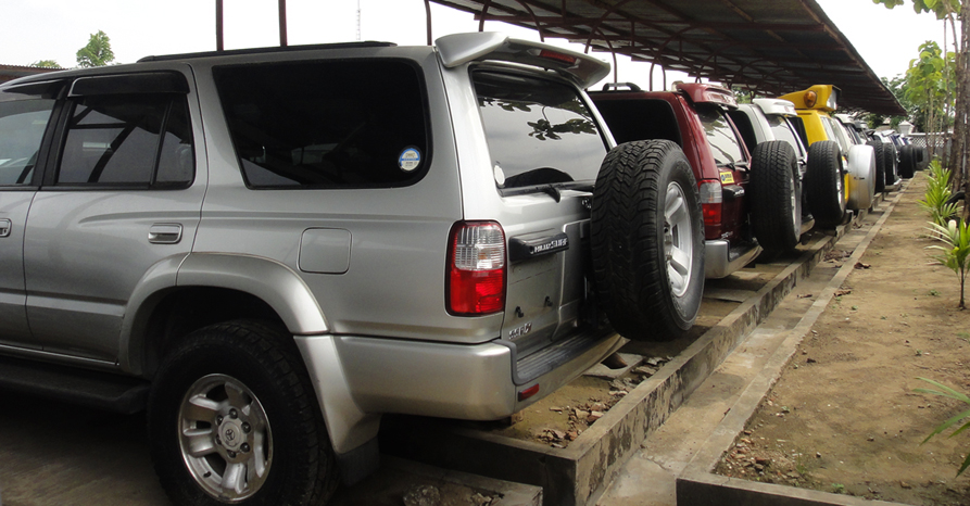 มองเห็น Landcruiser จอดเรียงรายด้านหน้าเป็นตับ ๆ