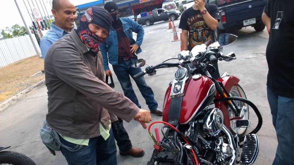 บิ๊กเปา คงนั่งนึกอยู่ในใจละว่ากูแม่งหาเรื่องขับ VX 100 อยู่ดีๆ เสือกทะลึ่งมาขี่ hd พังกันแม่งทุกปั๊ม