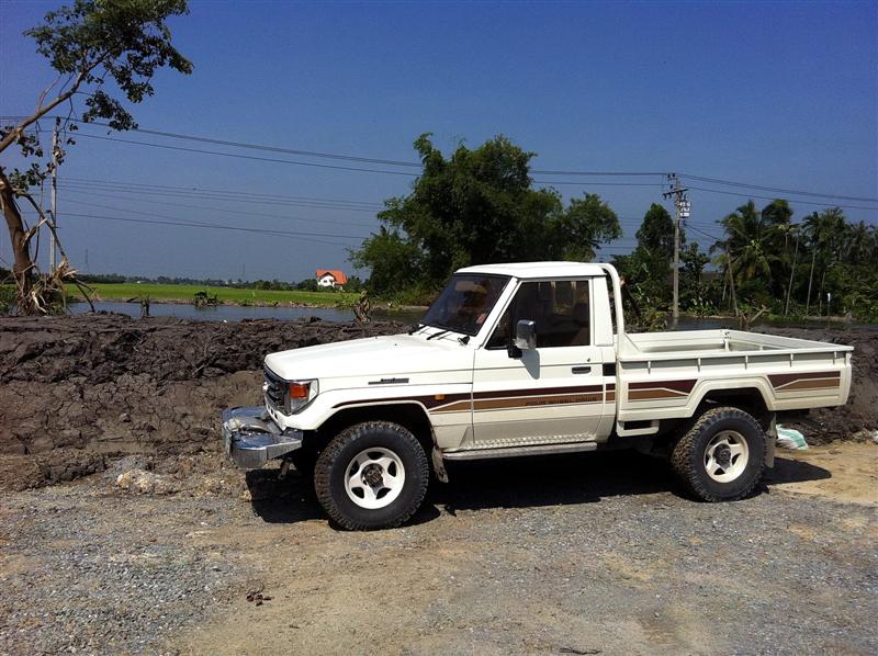 ...จนถึงปัจจุบันผมพลิกผันตัวเองมาเป็นเกษตรกรมือใหม่ในเวลาว่างตามรอยอาชีพดั้งเดิมของบรรพบุรุษ...ดังนั้นรถที่เหมาะสมกับการใช้งานของเกษตรกรมือใหม่จึงน่าจะเป็นรถกะบะ...รถในตระกูล HILUX อย่าง LN111 กับ LN106 ก็ขับดี นะ แต่ความชอบในรถตระกูล Land Cruiser ก็ยังเรียกร้องตามหา Land Cruiser กะบะมาตลอด กะจะปั้น FJ 45 กะบะก็ยากเย็นเหลือเกินหา BODY สวยๆสภาพดีๆก็ยากมากๆ ...จึงตกลงปลงใจที่ HZJ 75 นี่แหละน่าจะเหนื่อยน้อยหน่อย อะไหล่หลายอย่างทั้งภายนอกภายในก็หาง่ายใช้แทนกับรุ่นอื่นก็ได้ จึงไม่ลังเลที่จะหามาทำตามความชอบและความฝันของตัวเอง...
