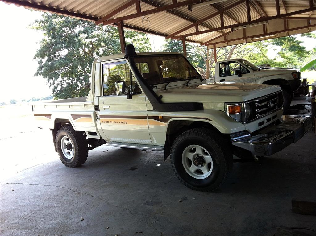 ...จนถึงปัจจุบันผมพลิกผันตัวเองมาเป็นเกษตรกรมือใหม่ในเวลาว่างตามรอยอาชีพดั้งเดิมของบรรพบุรุษ...ดังนั้นรถที่เหมาะสมกับการใช้งานของเกษตรกรมือใหม่จึงน่าจะเป็นรถกะบะ...รถในตระกูล HILUX อย่าง LN111 กับ LN106 ก็ขับดี นะ แต่ความชอบในรถตระกูล Land Cruiser ก็ยังเรียกร้องตามหา Land Cruiser กะบะมาตลอด กะจะปั้น FJ 45 กะบะก็ยากเย็นเหลือเกินหา BODY สวยๆสภาพดีๆก็ยากมากๆ ...จึงตกลงปลงใจที่ HZJ 75 นี่แหละน่าจะเหนื่อยน้อยหน่อย อะไหล่หลายอย่างทั้งภายนอกภายในก็หาง่ายใช้แทนกับรุ่นอื่นก็ได้ จึงไม่ลังเลที่จะหามาทำตามความชอบและความฝันของตัวเอง...
