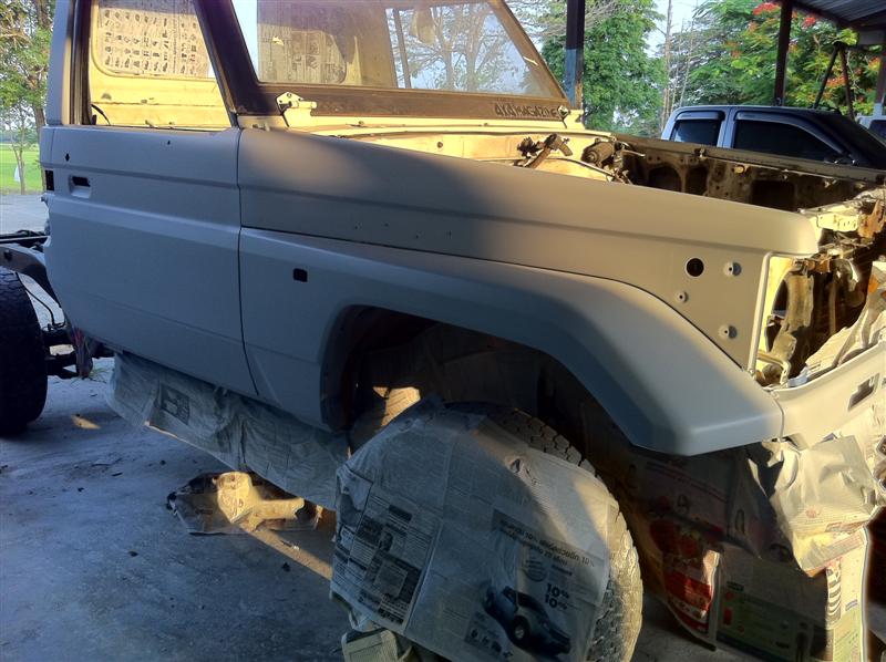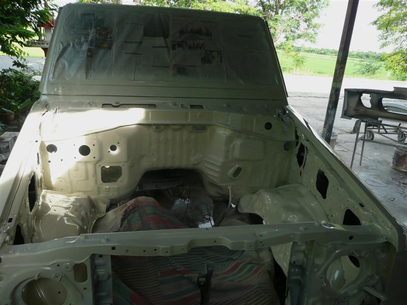 มาดูความคืบหน้ากันต่อ ช่างพ่นรองพื้นและงานโป๊วสีเสร็จแล้ว สีโป๊วของ ดูป๊องเนื้อเนียนดีมากครับ