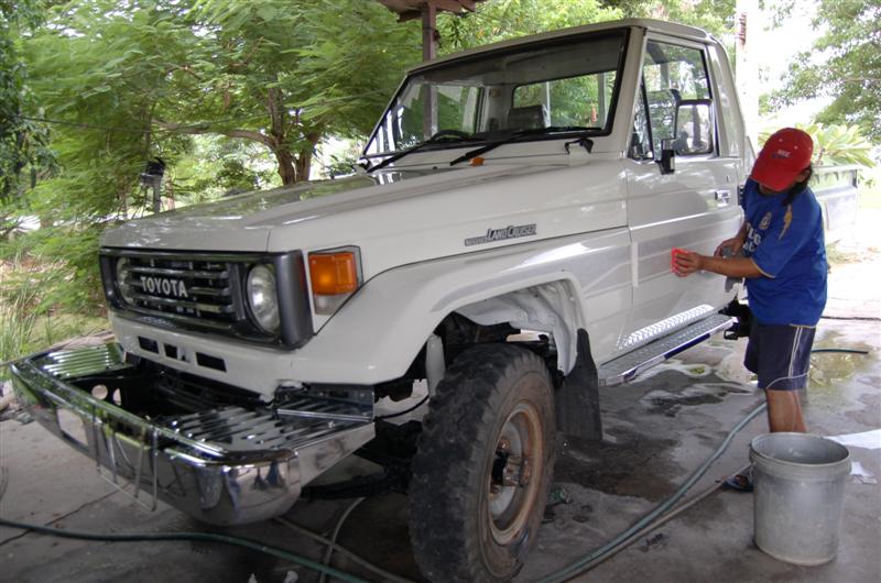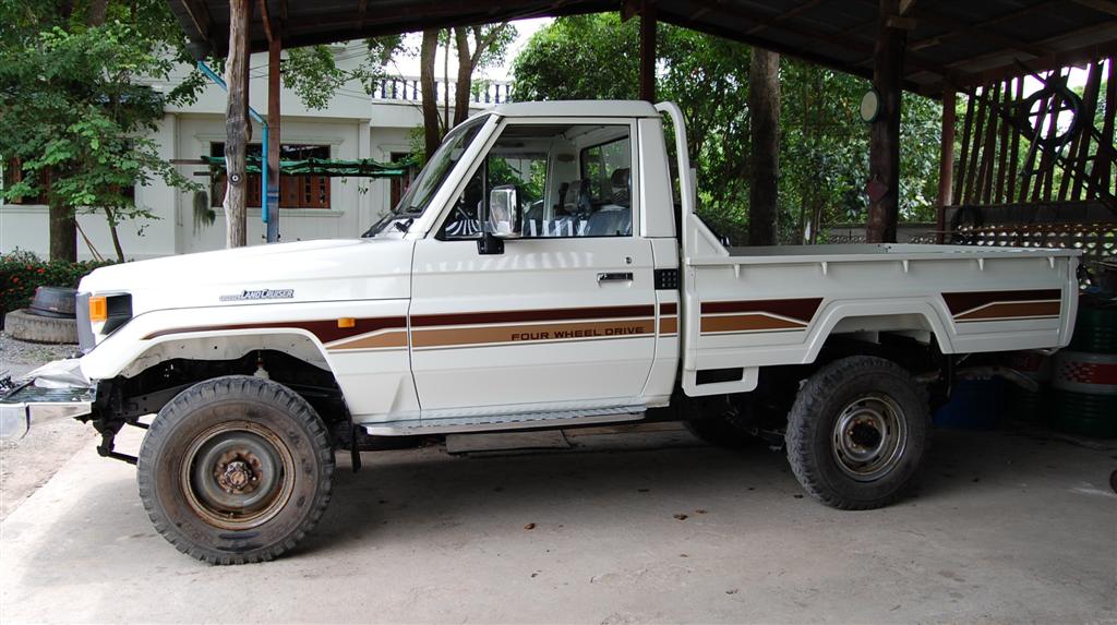 ...จนถึงปัจจุบันผมพลิกผันตัวเองมาเป็นเกษตรกรมือใหม่ในเวลาว่างตามรอยอาชีพดั้งเดิมของบรรพบุรุษ...ดังนั้นรถที่เหมาะสมกับการใช้งานของเกษตรกรมือใหม่จึงน่าจะเป็นรถกะบะ...รถในตระกูล HILUX อย่าง LN111 กับ LN106 ก็ขับดี นะ แต่ความชอบในรถตระกูล Land Cruiser ก็ยังเรียกร้องตามหา Land Cruiser กะบะมาตลอด กะจะปั้น FJ 45 กะบะก็ยากเย็นเหลือเกินหา BODY สวยๆสภาพดีๆก็ยากมากๆ ...จึงตกลงปลงใจที่ HZJ 75 นี่แหละน่าจะเหนื่อยน้อยหน่อย อะไหล่หลายอย่างทั้งภายนอกภายในก็หาง่ายใช้แทนกับรุ่นอื่นก็ได้ จึงไม่ลังเลที่จะหามาทำตามความชอบและความฝันของตัวเอง...