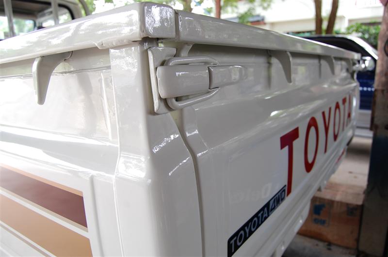 ลูกกระบะของ Series 75 กว้างกว่าของตระกูล HILUX ครับสังเกตุว่าฝาท้ายของ Series 75 จะมี 3 ตะขอ