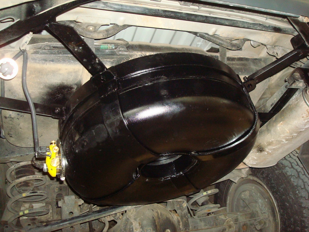 รูปการวางถังโดนัทขนาด 61 ลิตรครับ วางใต้ถังน้ำมันสำรอง ( Sub tank) อีกที ทำขายึดทั้งหมด 6 ขา