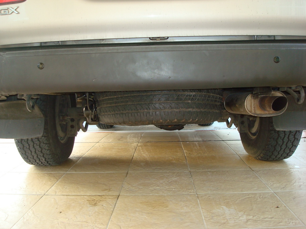 รัดด้วยยางเปอร์เซ็นต์ ครึ่งเดียวเฉพาะด้านที่หันออกมาท้ายรถ (ยางตัดมาเฉพาะด้านดอกยาง และแก้มยางด้านบนบางส่วนเอาไว้โค้งหุ้มถังด้านบน ด่านล่างทิ้งไว้เปลือยๆ จึงหมดปัญหาเรื่องน้ำขัง )