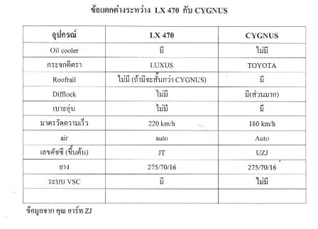 ข้อแตกต่างระหว่าง LX 470 กับ CYGNUS รับโทรศัพท์บ่อยเรื่องความแตกต่างของ 2 ตัวนี้