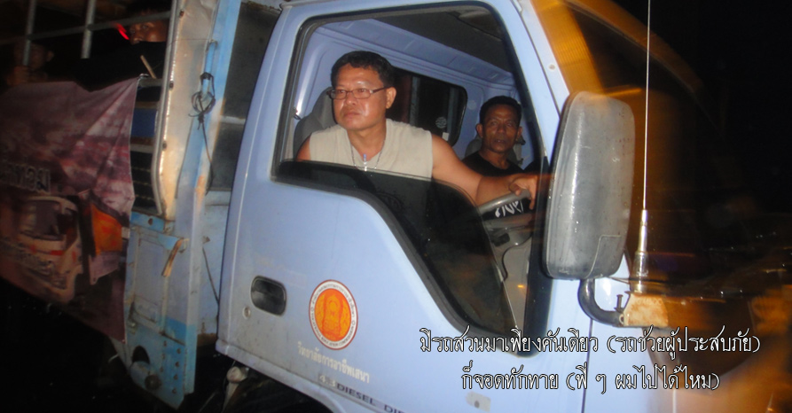 ตอนแรก กะว่า จะนำไปมอบให้คณะพี่ กร ใน TLC ที่จะเดินทางในวันที่ ๑๖ ต.ค. แต่เผอิญว่า คณะศิษย์วัดพิชยญาติการาม กทม. พึ่งจะโทร.ให้ไปรับของได้เย็นวันที่ ๑๖ ต.ค. ตอนนี้ ของผมขนมาไว้ที่บ้าน ในเขตบ้านนครชัยศรี ก็ยังพอช่วยตัวเองได้ ออกไปตลาดได้อยู่ อยากฝากให้พี่ๆ ที่จะไปช่วยน้ำท่วมที่ลำบากมากกว่านครชัยศรี ติดต่อมาได้ ถ้าเกินวันที่ ๑๘ ต.ค. ผมจะนำไปมอบให้ อบต. ครับ