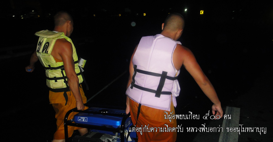 ให้ผมนำเครื่องปั่นไฟ ไปส่งที่ มหาวิทยาลัยมหาจุฬาลงกรณราชวิทยาลัย วังน้อย อยุธยา ซึ่งเป็นศูนย์อพยพ และมีพระภิกษุสามเณรเรียนอยู่พันกว่ารูป ขณะนี้ โดนตัดไฟ ตัดน้ำเรียบร้อย