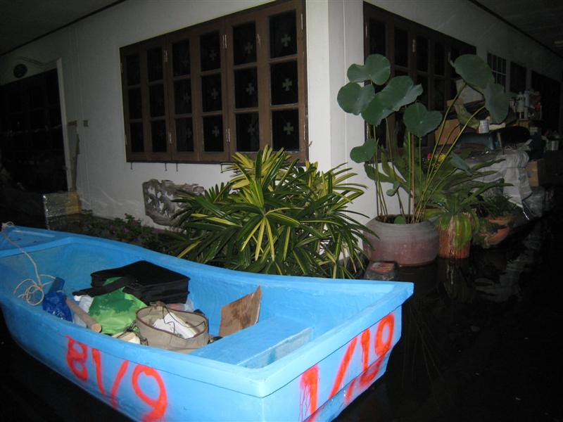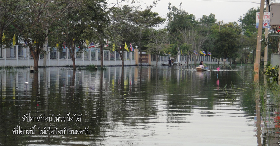 ปริมาณน้ำซอยเข้าบ้าน หลังจากน้ำเพิ่มขึ้น จาก ๕๐ - ๘๐ ซม. หยุดวิ่งแล้วครับ ใช้เรือแทน