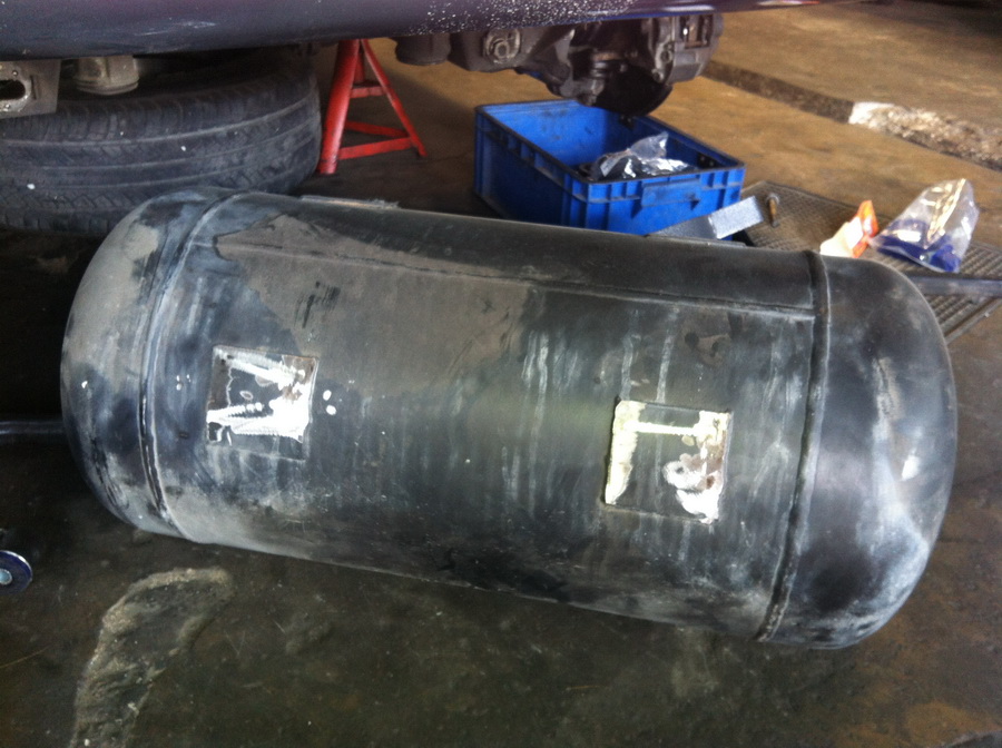 ถังแก๊ส 76 ลิตร ช่างกบถอดมาตัดขาทิ้ง เพื่อให้ติดตั้งไม่ดูย้อย