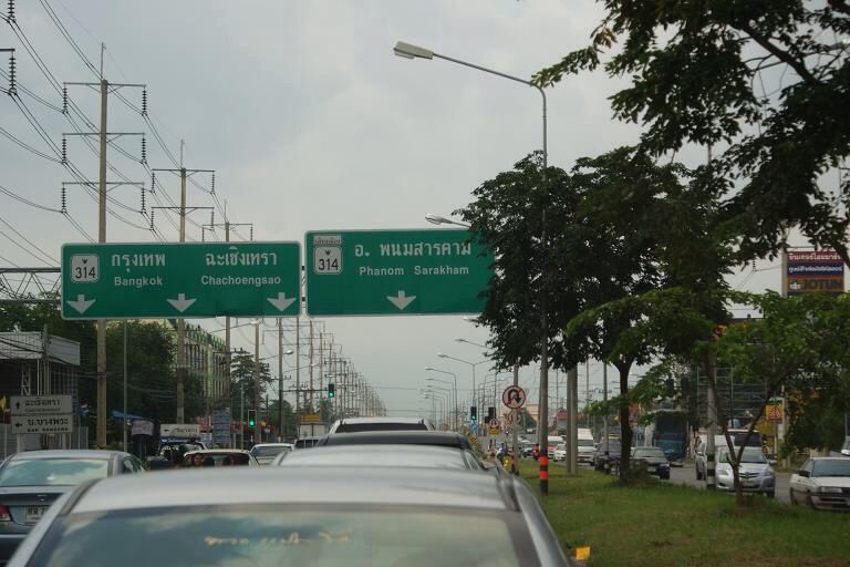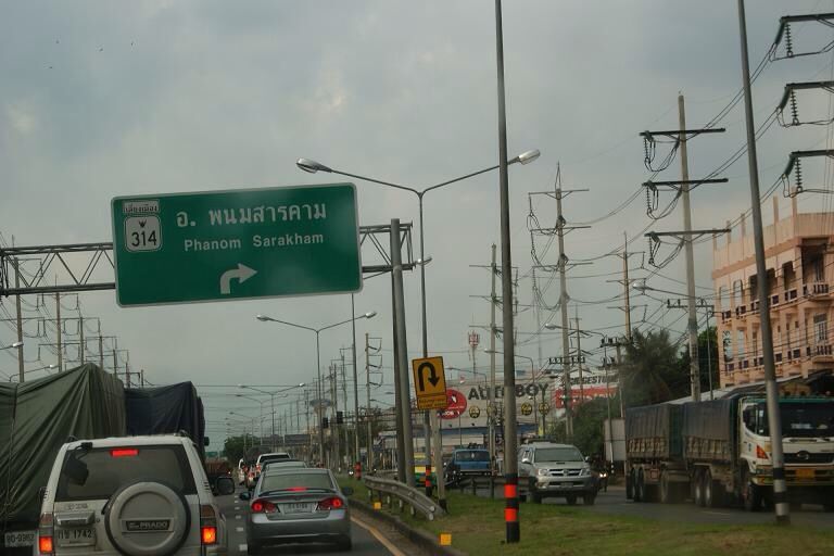 วิ่งมาประมาณ 5 กม จุดสังเกต ข้ามแม่น้ำบางประกง ข้ามแยกคอมเพล็คใหญ่