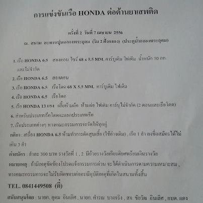 ประชาสัมพันธ์ครับ ขอเชิญร่วมแข่งขันเรือเร็วประเพณี ครั้งที่ ๓ ชิงถ้วยเกียรติยศ และเงินรางวัล ณ สนามหน้าอู่ต่อเรือซุปเปอร์โกมัด คลอง ๑๓ บ้านเกาะ เขตหนองจอก กรุงเทพฯ ในวันที่ ๑๔ - ๑๕ เมษายน ๒๕๕๖