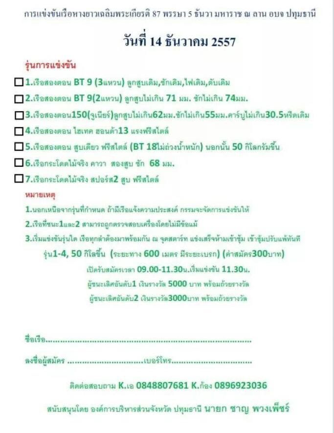 คุณ Aod ท่าอิฐ นี้อยู่ ซอยท่าอิฐ บางบัวทองหรือป่าวครับ เข้าไป เฟส สนทนา ชาวเรือซิ่ง วิ่งกระจ่ายได้ ครับ ข่าวสารการแข่งทุกสนาม รูปต่าง ๆ เยอะมากครับ