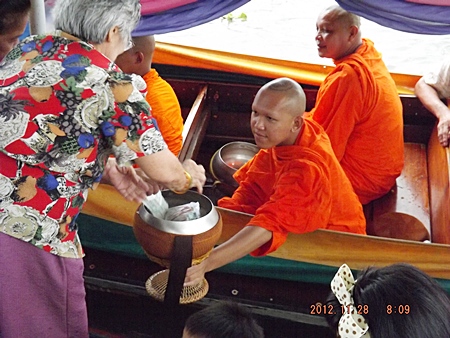 วันที่ 6-12-2555 ตักบาตรพระ 108 ของชาวริมคลองบางกอกน้อยครับตั้งแต่ปากคลองบางคูเวียงถึงวัดปราสาทครับ