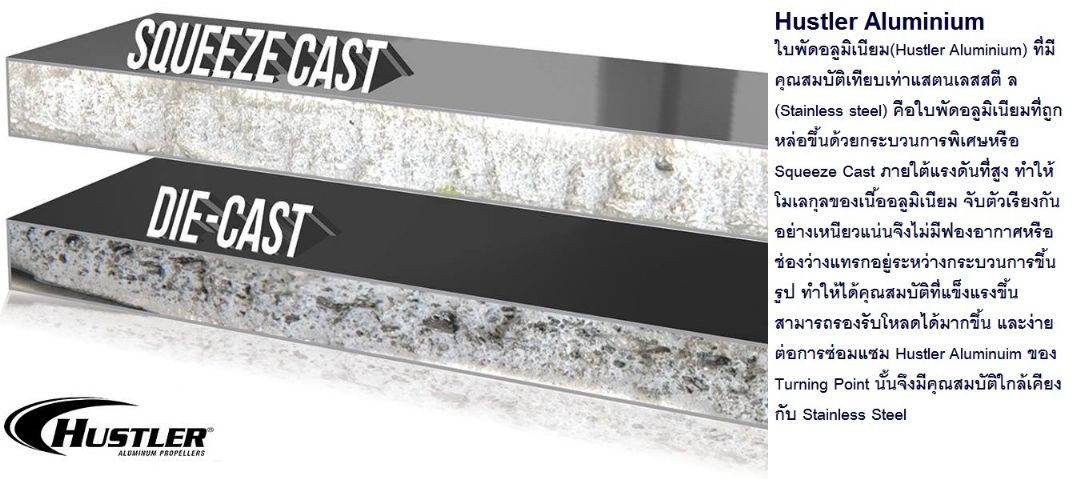 ใบจักร 4 ใบพัดที่จะมาปฏิวัติวงการใบจัก ไปตลอดกาล ถูกออกแบบและพัฒนามาอย่างยาวนานถึง 6 ปี ไม่มีใครเคยสร้างใบจัก ที่มีใบพัดแตกต่างกันถึง 2 แบบในตัวเดียว ด้วยใบจักรที่ถูกออกแบบมาอย่างพิเศษ จากรูปทรงใบมีดแบบคู่ หมายเลข1ถูกออกแบบมาให้มีพิทที่สูง ทำให้สามารถทำความเร็วปลายได้ดี ส่วนใบมีด หมายเลข 2 ถูกออกแบบมาให้มีพิทที่ต่ำ จะทำให้เรือมีอัตราเร่งที่ดี ออกตัวและขึ้นน้ำได้เร็ว มีความเร็วช่วงต้นที่ดี ควบคุมการเลี้ยวได้อย่างมีประสิทธิภาพ
