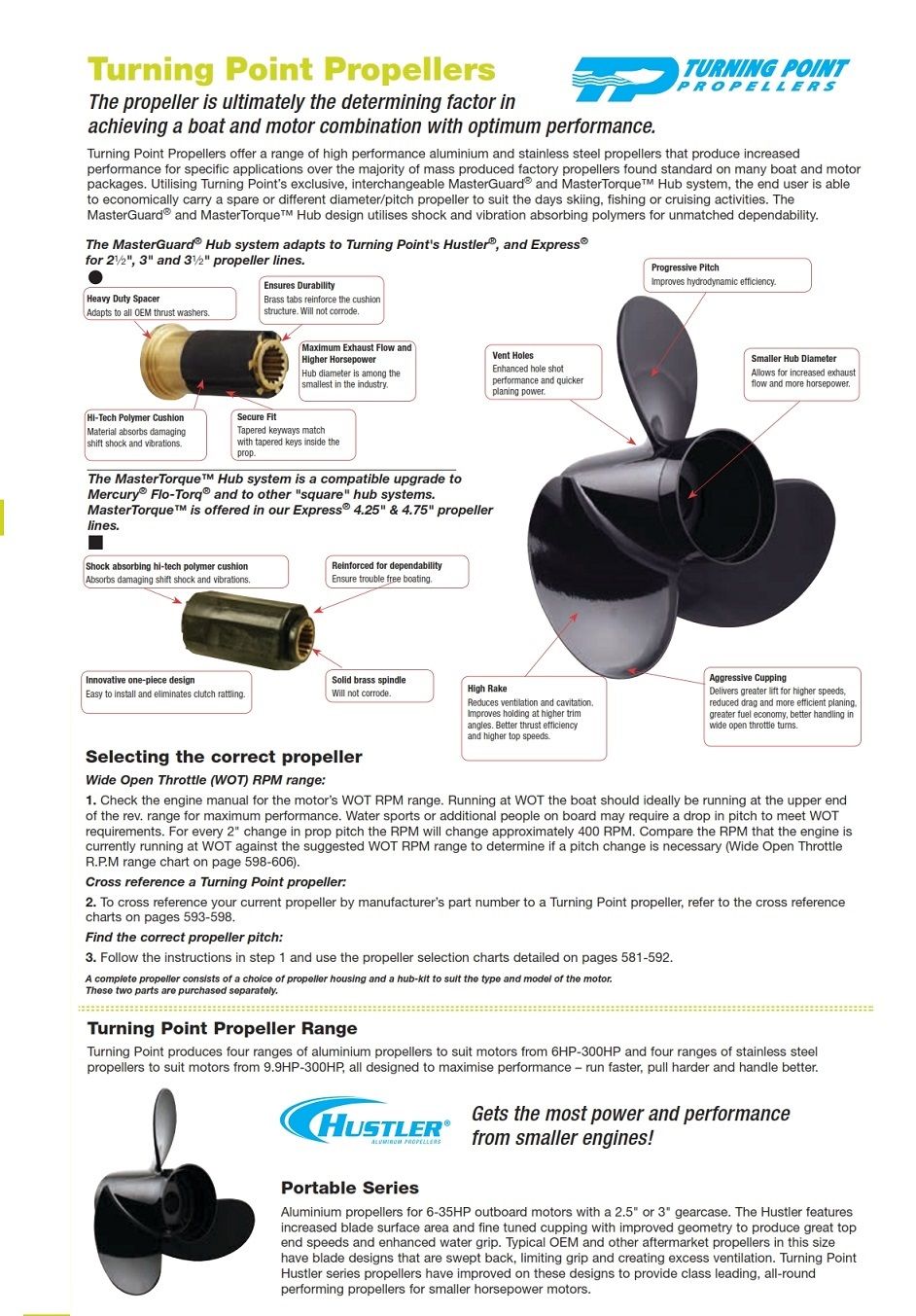 Turning Point ได้พิสูจน์ให้เห็นแล้วว่าไม่จำเป็นที่ใบพัดนั้นจะต้องเลือกกำลังขับหรือความเร็วสูงสุดทางใดทางหนึ่งเท่านั้น ทั้งยังนำคุณสมบัติต่างๆมารวมใว้ในใบพัดอันเดียวได้อย่างมีประสิทธิภาพ ใบจักร 4 ใบพัด เหมาะสมสำหรับท่านที่ต้องการจะเพิ่มอัตราเร่ง การควบคุม และโหลดต่างๆ อีกทั้งยังเหมาะสมกับ กีฬาทางน้ำ Sterndrive Boat, Tri-toons, Bay Boat หรืออื่นๆนี่คือใบพัดที่คุ้มค่าที่สุด