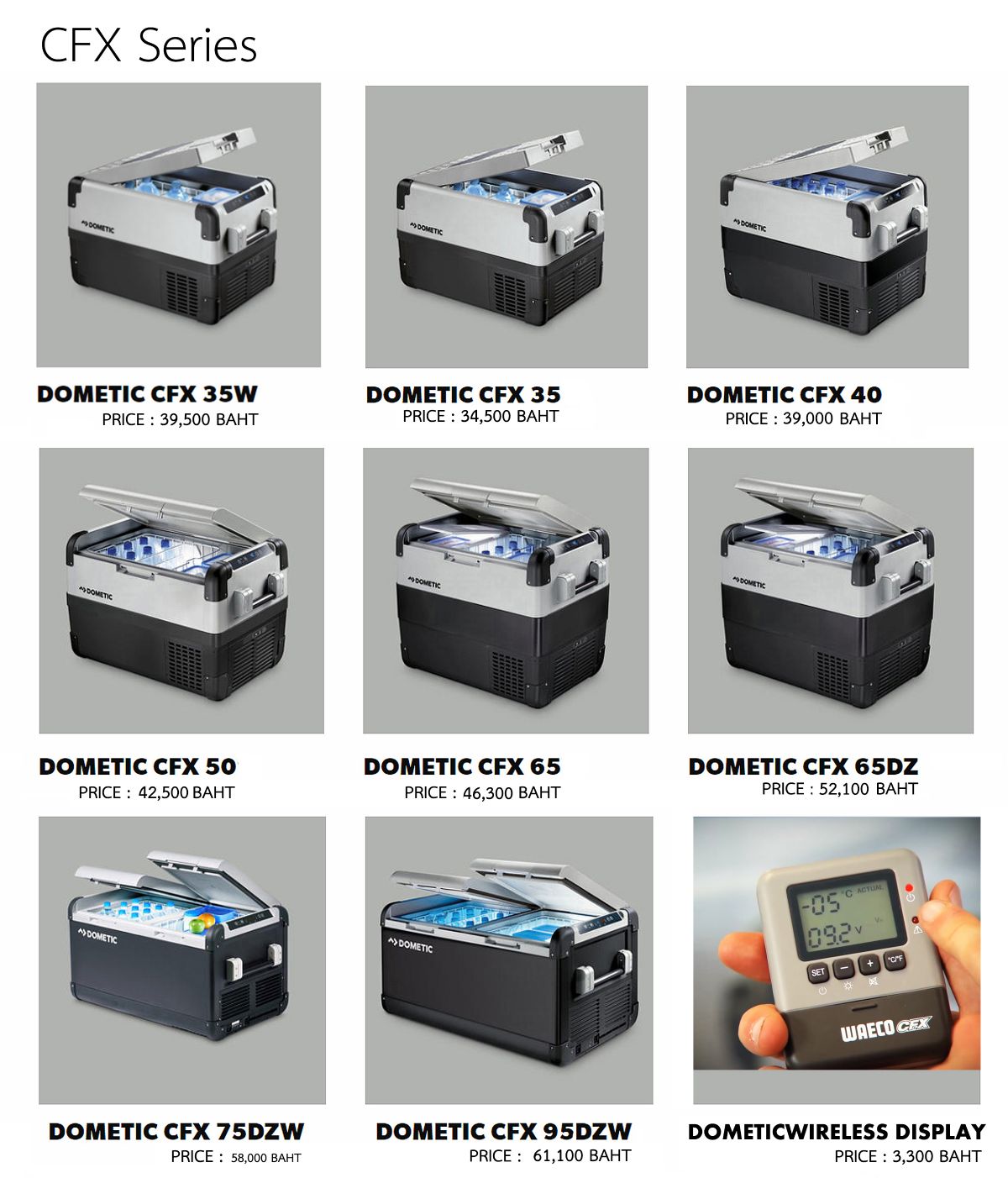 รหัส CFX เป็นแบบแช่แข็งพิเศษ อุณหภูทิต่ำสุด -22c มีจอแสดงผลแบบดิจิตอลและไฟ LED ส่องสว่าง มีช่องเสียบ USB* และบางรุ่นมีช่อง Cooler แยกกับ Freezer สามารถปรับอุณหภูมิแยกกันอิสระ ตัดการทำงานก่อนที่แบตเตอร์รี่รถยนต์จะหมด สามารถตั้งได้ 3 ระดับ