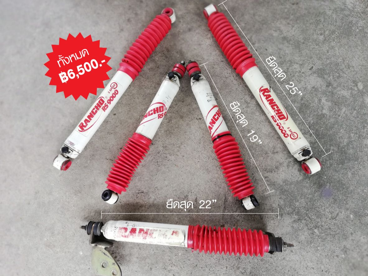 1. โช้คอัพ RANCHO Rs 9000 ปรับ 5 ระดับ สำหรับรถยกสูง สภาพดี หน้ายืดสุด 19 นิ้ว 1 คู่ หลังยืดสุด 25 นิ้ว 1 คู่ และ กันสะบัดยืดสุด 22 นิ้ว 1 ต้น ยกชุด ราคา 6500.-