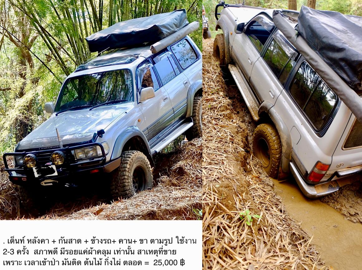 6. เต็นท์ หลังคา + กันสาด + ข้างรถ+ คาน+ ขา ตามรูป ใช้งาน 2-3 ครั้ง สภาพดี มีรอยแค่ผ้าคลุม เท่านั้น สาเหตุที่ขาย เพราะ เวลาเข้าป่า มันติด ต้นไม้ กิ่งไผ่ ตลอด = 25,000 ฿