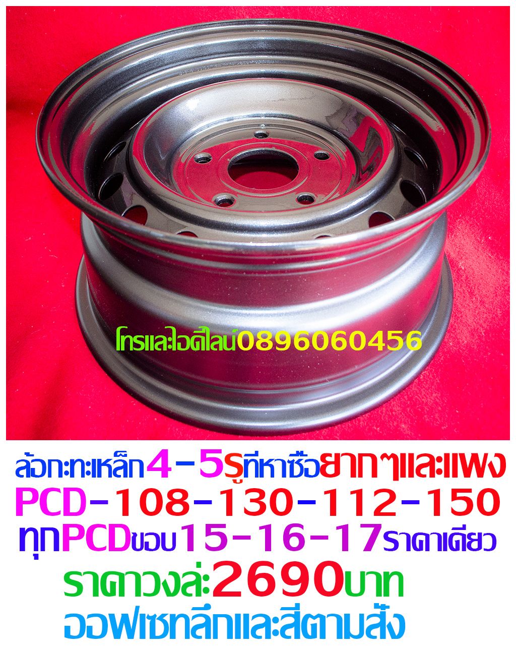 ขายล้อกะทะเหล็ก4-5รูขอบPCDที่หายากๆแพงๆPCD-108-112-130-150และอื่นๆขอบ15-16-17ออฟเซทลึกและสีตามสั่งราคาเดียวทั้งหมดวงล่ะ2690บาทโทรและไอดีไลน์0896060456เน้นไลน์และโทร
