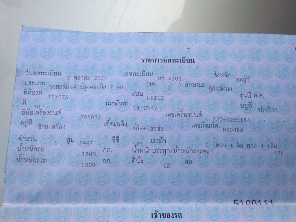 ขายทะเบียนรถตู้โตโยต้าหัวจรวดมีเล่มพร้อมเอกสารการโอนให้ครบ เลขตัวรถมีภาษีไม่ขาดต่อขาย 11000 บาท 0829991928