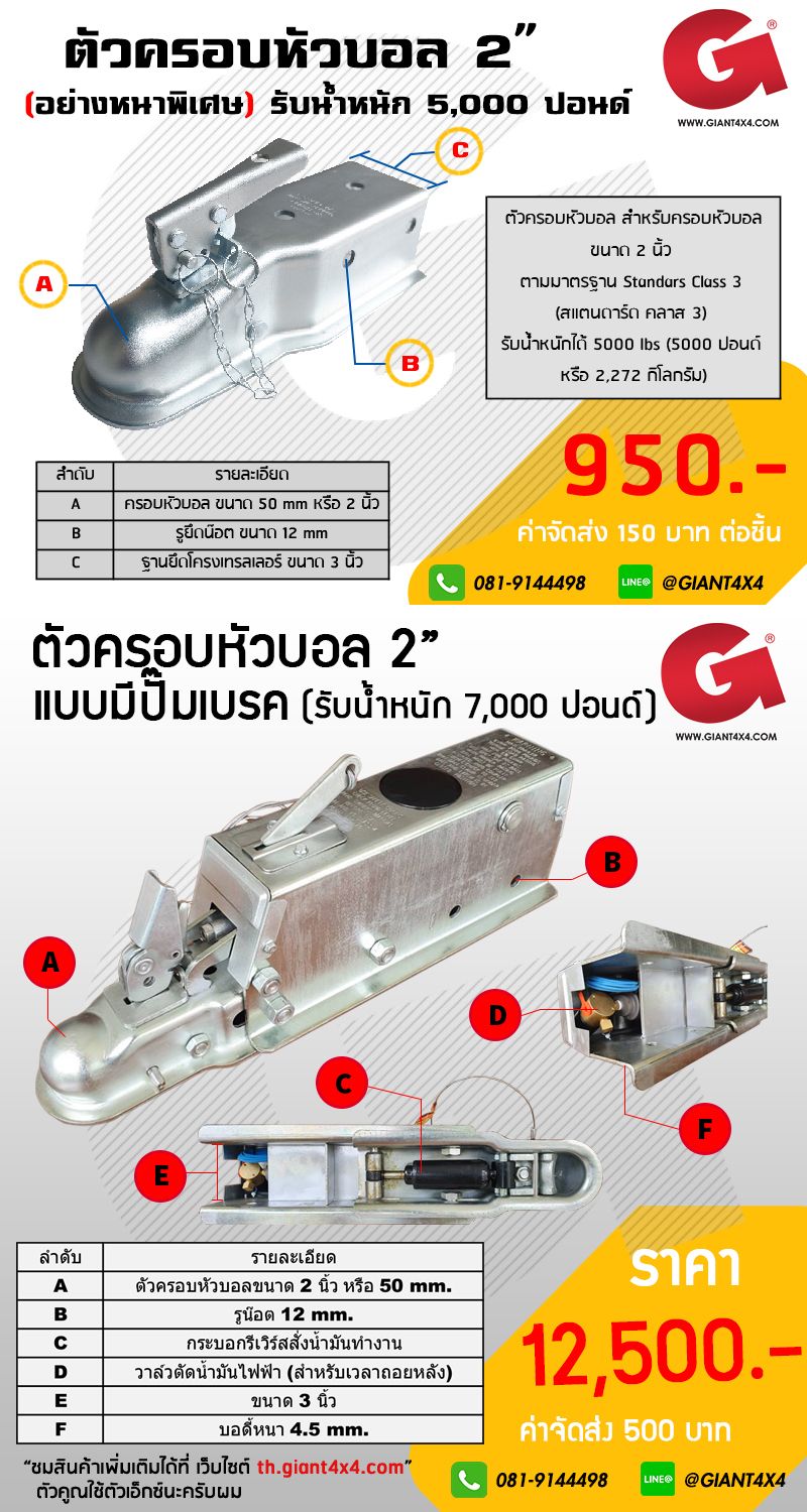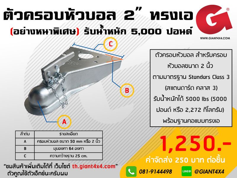 ชุดครอบหัวบอลขนาด 2 นิ้ว พร้อมฐานกว้างแบบทรง A สามารถรับน้ำหนักได้ 5000 ปอนด์ (Standard Class III)