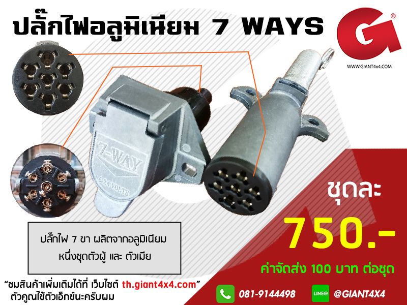 ปลั๊กไฟ 7 ขา ผลิตจากอลูมิเนียม มาพร้อมทั้งชุดตัวผู้ และ ตัวเมีย