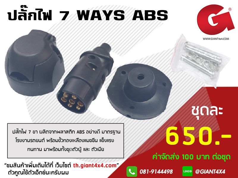 ปลั๊กไฟ 7 ขา ผลิตจากพลาสติก ABS อย่างดี มาตรฐานโรงงานรถยนต์ พร้อมขั้วทองเหลืองแมชชีน แข็งแรง ทนทาน มาพร้อมทั้งชุดตัวผู้ และ ตัวเมีย