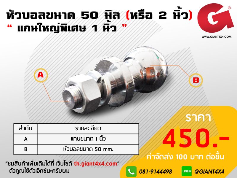 หัวบอลขนาด 50 มิล แกน 1 นิ้ว (25 มิล)