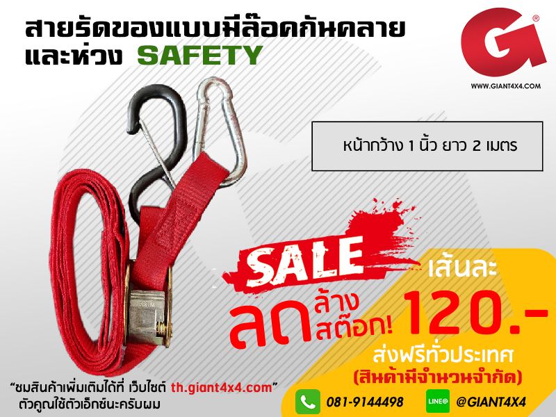 สายรัดของแบบมีล๊อคกันคลาย และห่วง safety