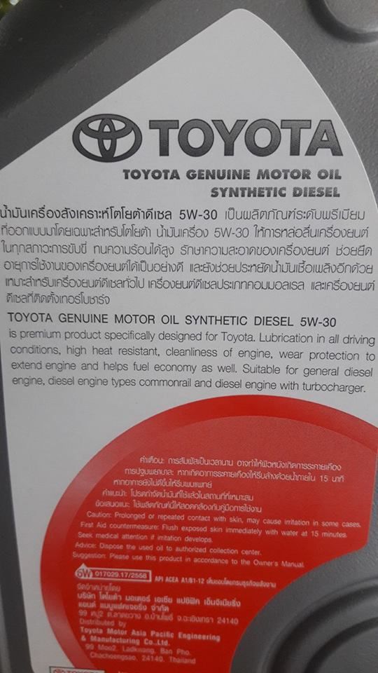 น้้ำมันสังเคราะห์TOYOTA /1 LT ขาย 200 คับ ดีเซล