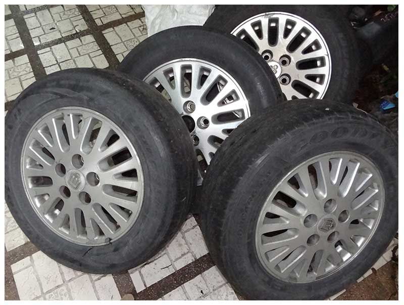 84/แม็ดเดิมๆโตโยต้าแอ็ดตืม่าพรีเวีย-ลูซีด้าพร้อมยางโยโกปี14ขนาด205-70-15 สวยๆไม่มีดุ้งหรือแตกร้าวใดๆทั้งสิ้นชุดละ6.000.-