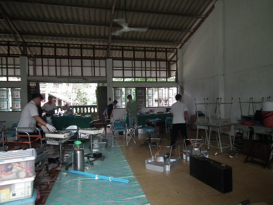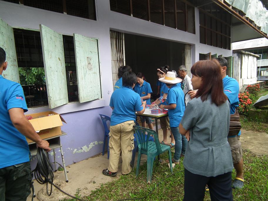 หลังจากเข้าพื้นที่พวกเราก็ช่วยกันยกจัดเตรียมของ ช่วย จนท.ของมูลนิธิฯ
