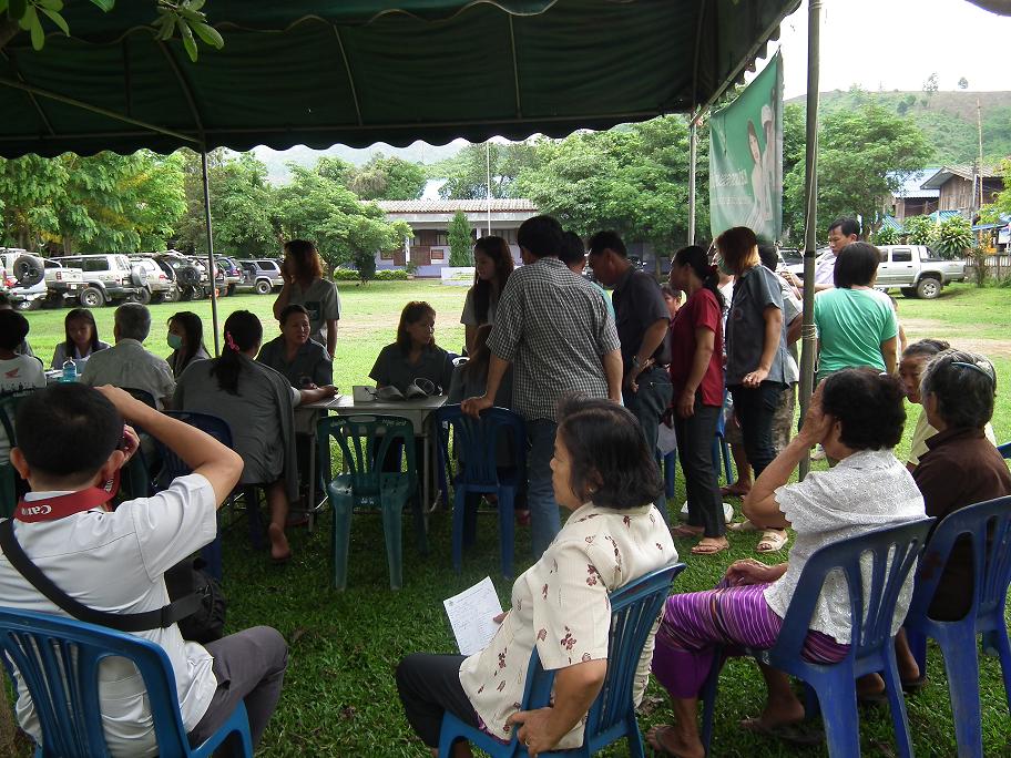 ชาวบ้านก็มานั่งรอตรวจกันครับ