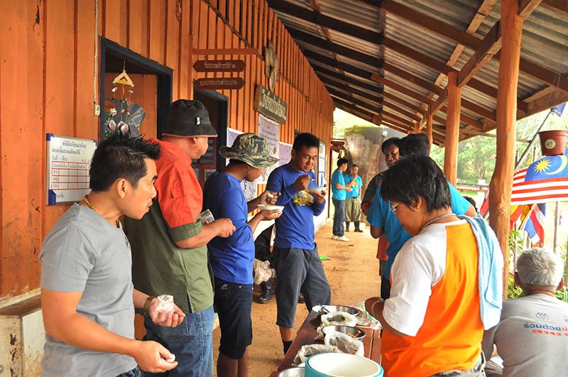 จัดการกับอาหารเช้าก่อนออกเดินทางไปรับคณะหมอ