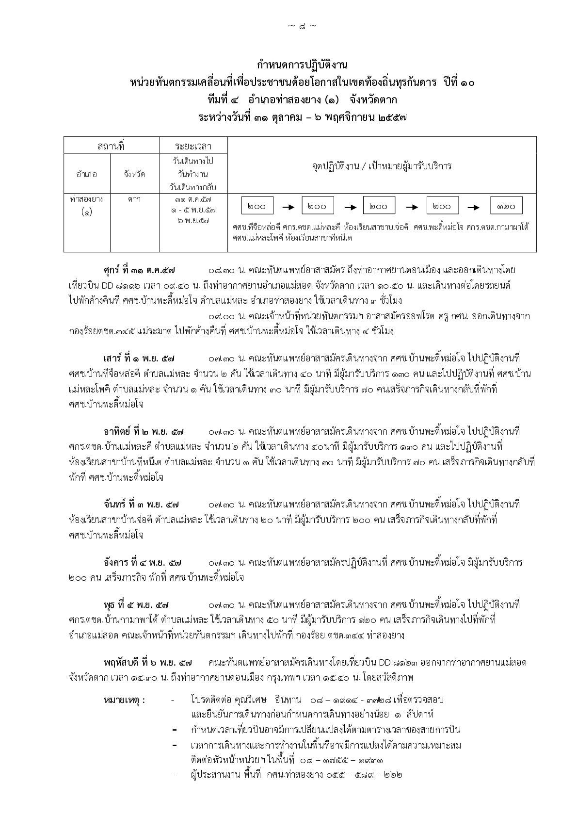 หน่วยทันตกรรมเคลื่อนที่เพื่อประชาชนด้อยโอกาสในเขตท้องถิ่นทุรกันดาร มูลนิธิ พอ.สว. ปีที่ ๑๐ ทีมที่ ๔ ออกให้บริการใน อ.ท่าสองยาง จ.ตาก ระหว่างวันที่ ๓๑ ตุลาคม - ๖ พฤศจิกายน.๒๕๕๗