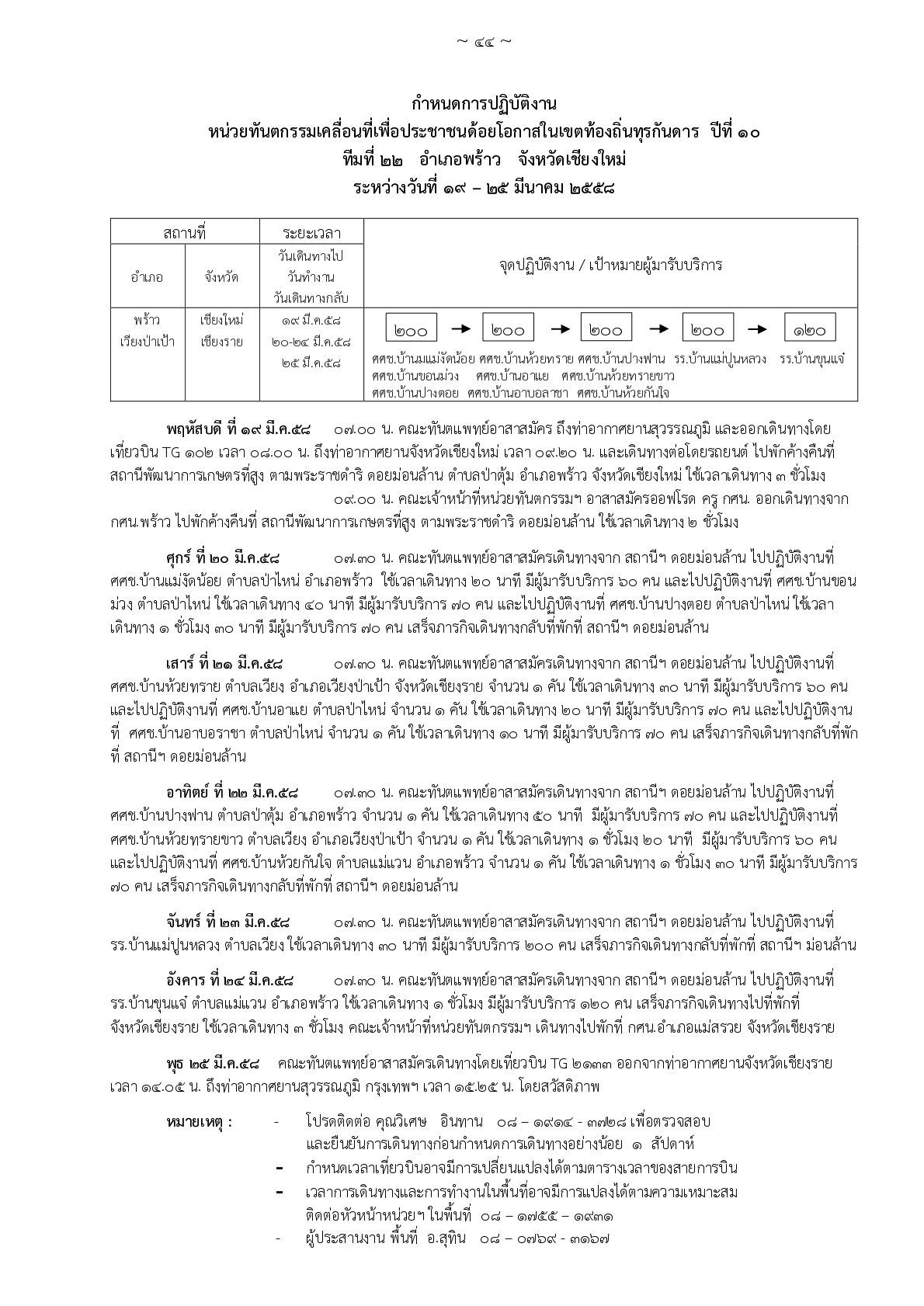 หน่วยทันตกรรมเคลื่อนที่เพื่อประชาชนด้อยโอกาสในเขตท้องถิ่นทุรกันดาร มูลนิธิ พอ.สว. ปีที่ ๑๐ ทีมที่ ๒๒ ออกให้บริการใน อ.พร้าว จ.เชียงใหม่ ระหว่างวันที่ ๑๙ - ๒๕ มีนาคม ๒๕๕๘