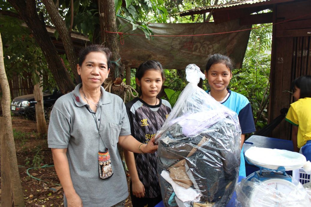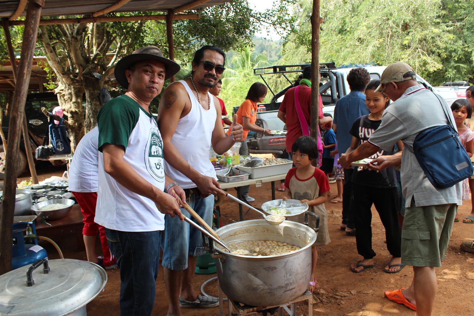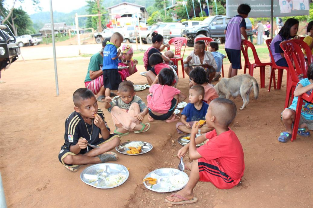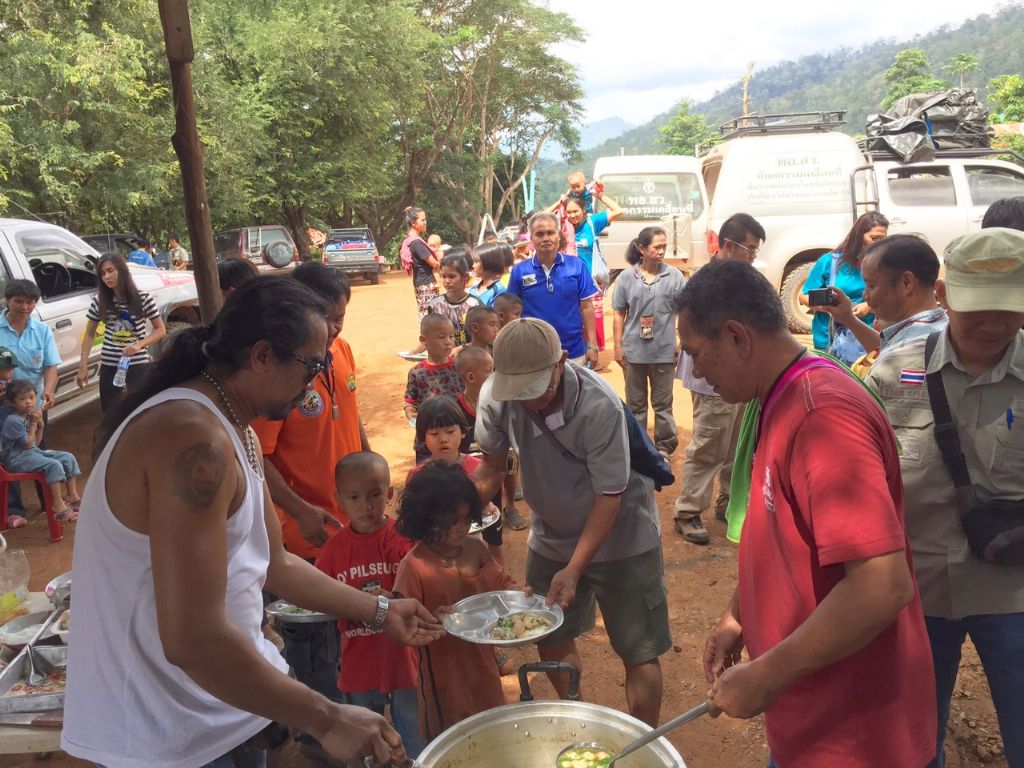 มอบของให้กับนักเรียนที่มาช่วยงานครัว